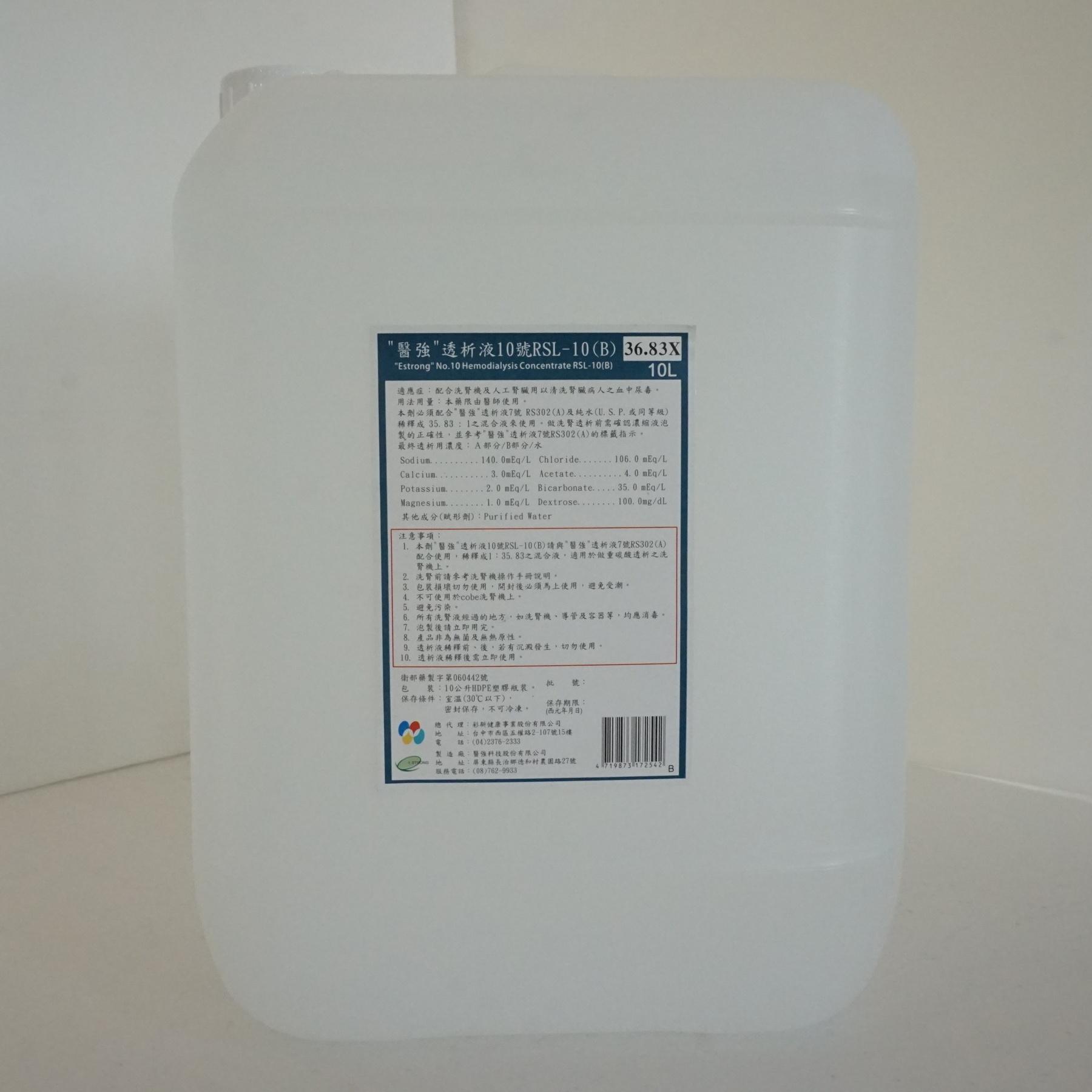 1.本劑”醫強”透析液10號RSL-10(B)請與”醫強”透析液7號RS302(A)配合使用。
