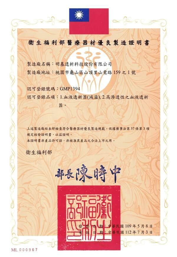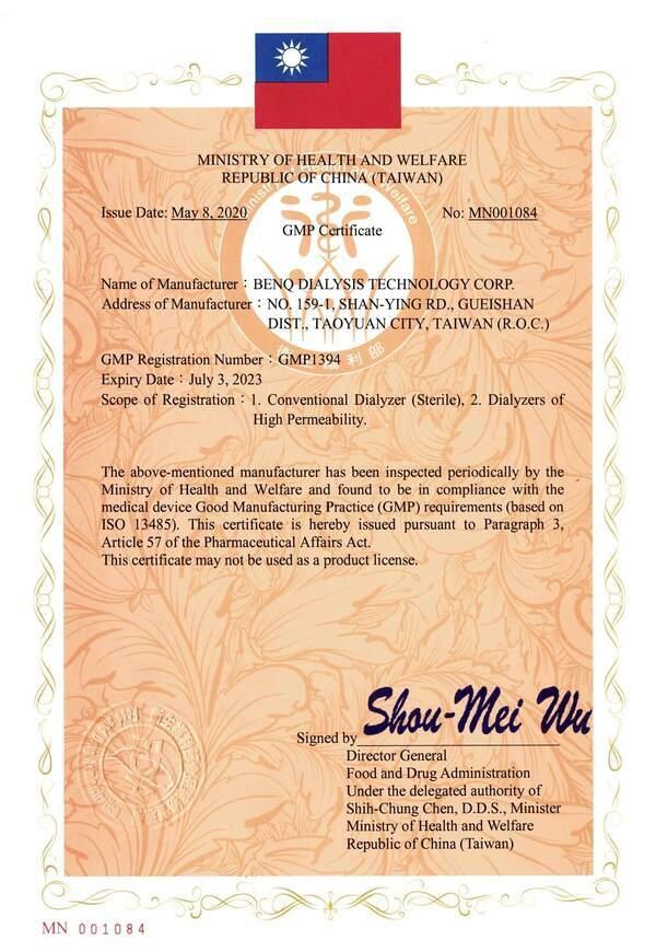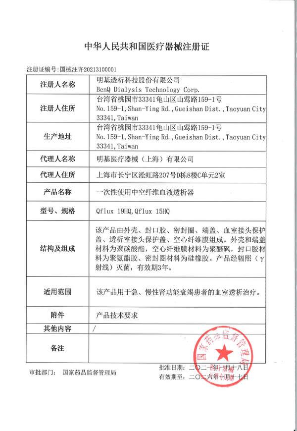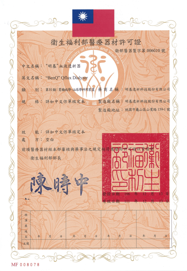 BenQ Qflux 透析器 TFDA 註冊